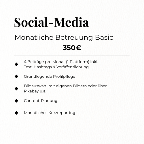 - Entwicklung einer individuellen Marketing- & Social-Media-Strategie